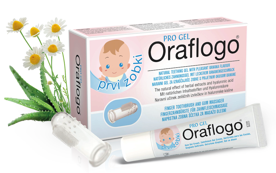 Oraflogo® Prvi zobki pro gel je gel za naravno lajšanje težav pri izraščanju zobkov.